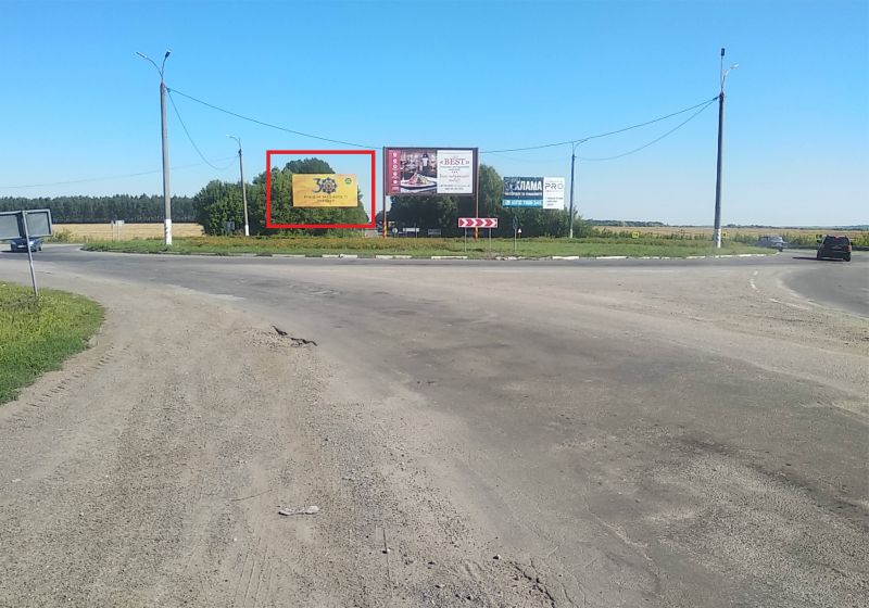 Білборд/Щит Чернівецький напрямок, Н-03 Житомир-Чернівці, км. 245+443 Коло на виїзді з м.Дунаївці, Дунаївці