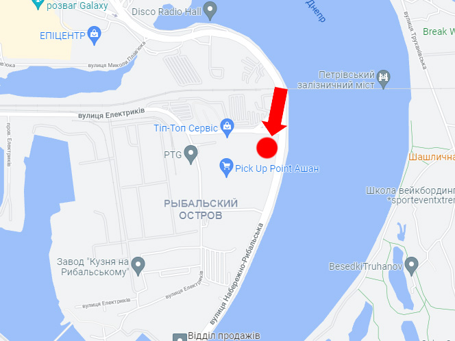 Набережно-Рибальська вул. – вул. Електриків, на світлофорі, до центру