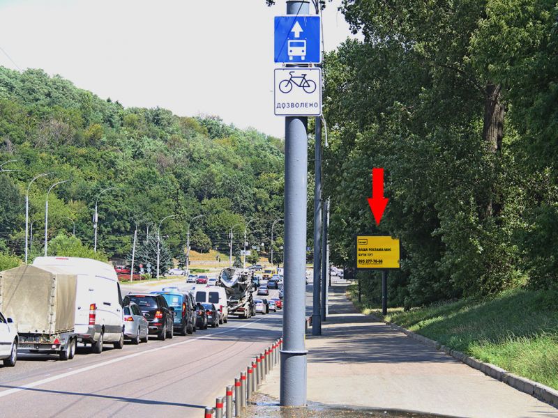 Миколи Міхновського бул. (колиш. бул. Дружби Народів), 150м. до пл. ГВОВ, в сторону мосту Патона