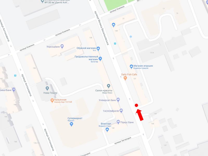 В. Васильківська вул. (колиш. Червоноармійська вул.), 131, біля АЗС "Amic", в сторону ст. м. "Палац Україна"