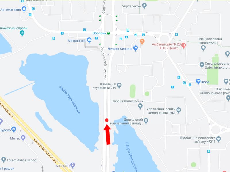 Оболонський пр., роздільник, між ст.м. "Оболонь" і ст.м. "Почайна", в сторону ст. м. "Оболонь"