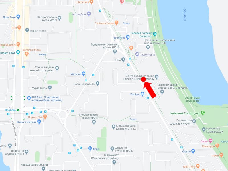 Володимира Івасюка пр. (колиш. пр. Героїв Сталінграда) 12-А, біля супермаркету "Сільпо", в сторону вул. Левка Лук'яненка (колиш. вул. Тимошенко)