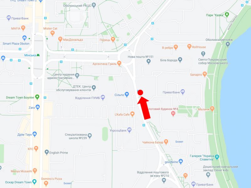 Володимира Івасюка пр. (колиш. пр. Героїв Сталінграда) 22, в сторону вул. Левка Лук'яненка (колиш. вул. Тимошенко)