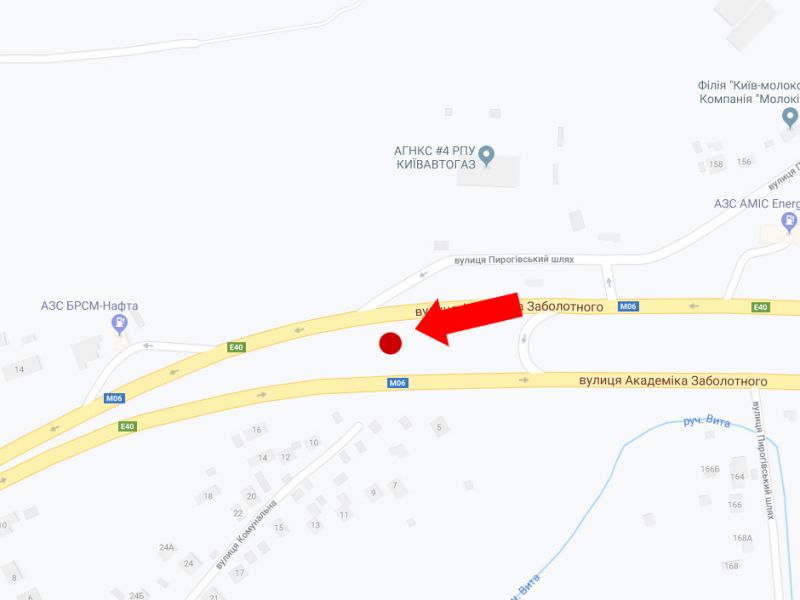 Заболотного вул - Пирогівський шлях, біля тютюнової фабрики, роздільник, в сторону пл. Одеської