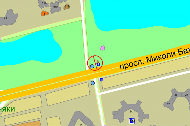 Бажана проспект - вул. Лариси Руденко, 500 м до ст. метро "Позняки", рух до центру міста
