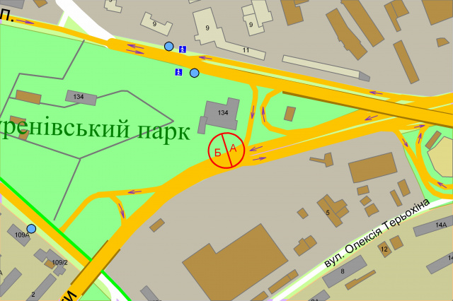 Олени Теліги вул. (Куренівський парк, концерт-холл "Freedom", рух в напр. центру)