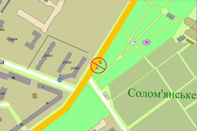 Повітряних сил пр-т/вул. Преображенська, за 300 м. до Солом'янської пл.