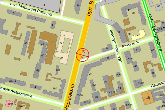 Чорновола В'ячеслава, 27 (рух від Берестейського пр-ту в напрямку Подолу)