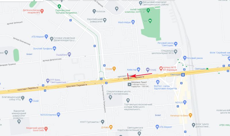 Перемоги пр-т 112, поруч з магазином "Watsons", рух в напрямку ст. м. "Житомирська"