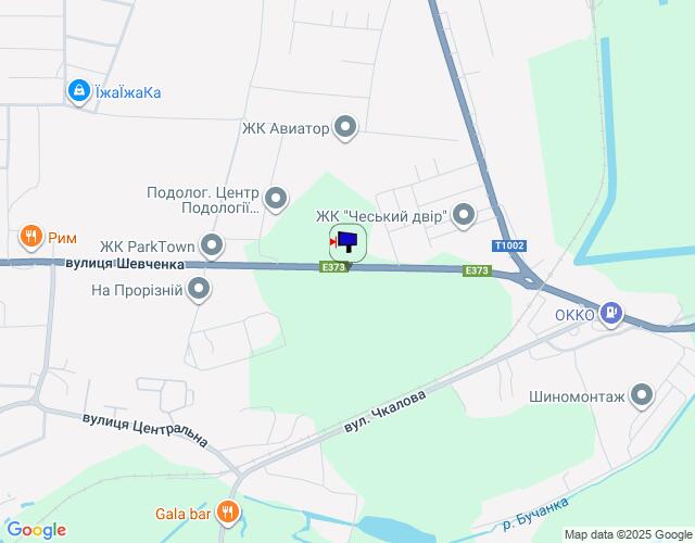 м. Буча, траса М-07 "Київ-Ковель", км 24+870 ліво, вул. Шевченка, виїзд з Гостомеля в Бучу, через 620м після розв'язки Ірпінь-Гостомель-Київ, низ
