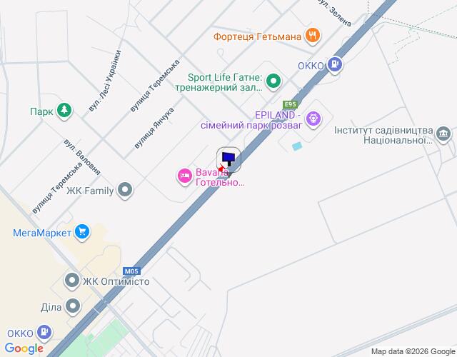 с. Чабани, траса М-05 Київ-Одеса, км 14+365 ліво, після ЖК Атріа Сіті, після представництва REHAU, за 250м до АЗС SOCAR, за 300м до Нової Лінії та магазину АТБ, через 500м після вул. Машинобудівників, верх