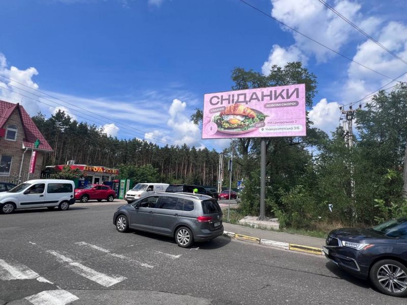 Білборд/Щит Київ - Житомир, Стоянка. перетин вул. Лісова та вулиця Київська, Траси