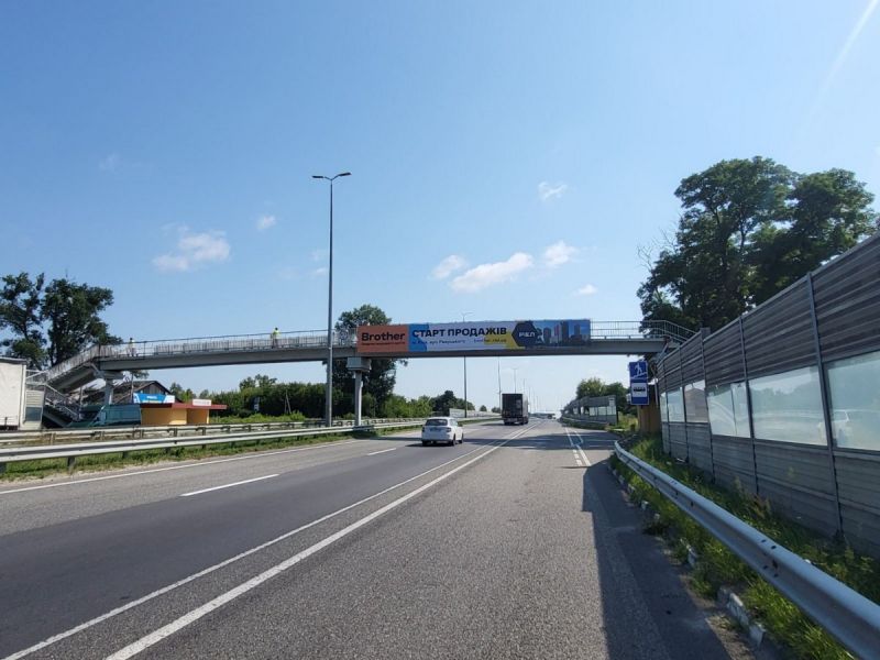 Реклама на мостах М-06 Житомирська траса 66+300 від КПП, Вісімнадцятий від Києва, с Небелиці в напрямку Києва, Траси