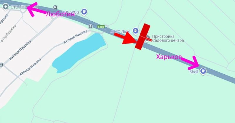 Траса Київ-Харків-466 км-сел. Пісочин -біля АЗС Лілія-ліва-у бік Харкова