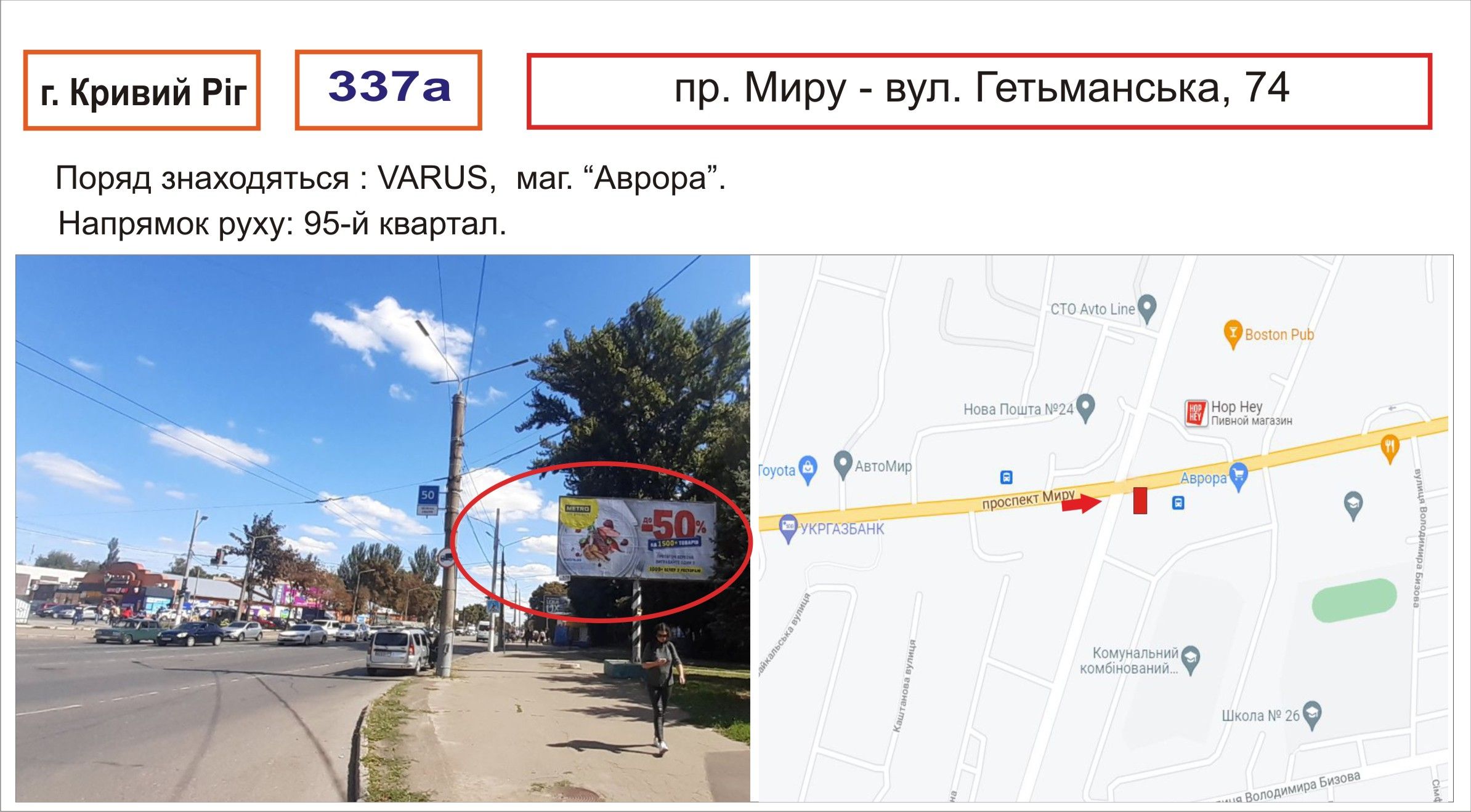 Білборд/Щит пр. Миру - вул.Гетьманська,74, Кривий Ріг