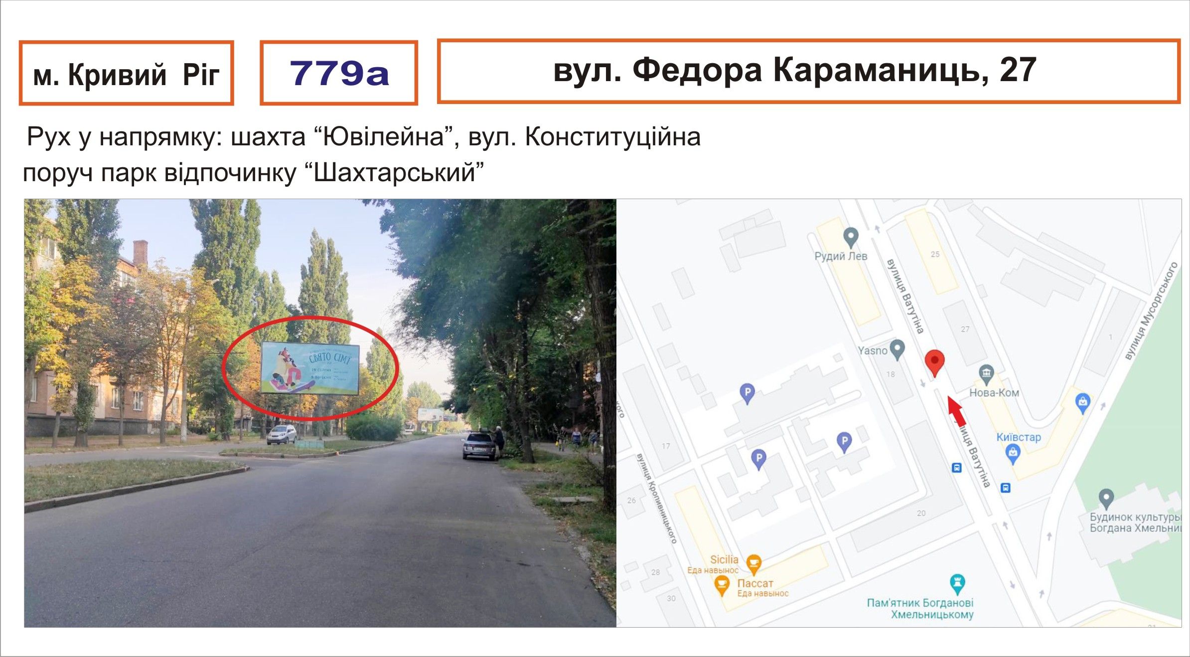 Білборд/Щит вул. Ф.Караманиць (Ватутіна),27 рух станція ЖД/вокзал Рокувата, Кривий Ріг