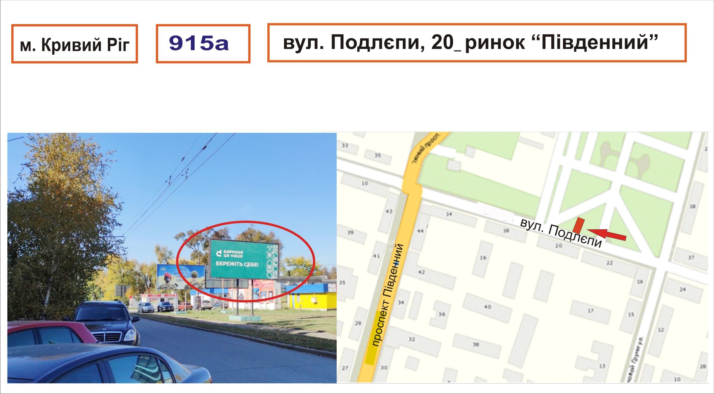 Білборд/Щит вул. Подлєпи, 20 _ринок Південний, Кривий Ріг