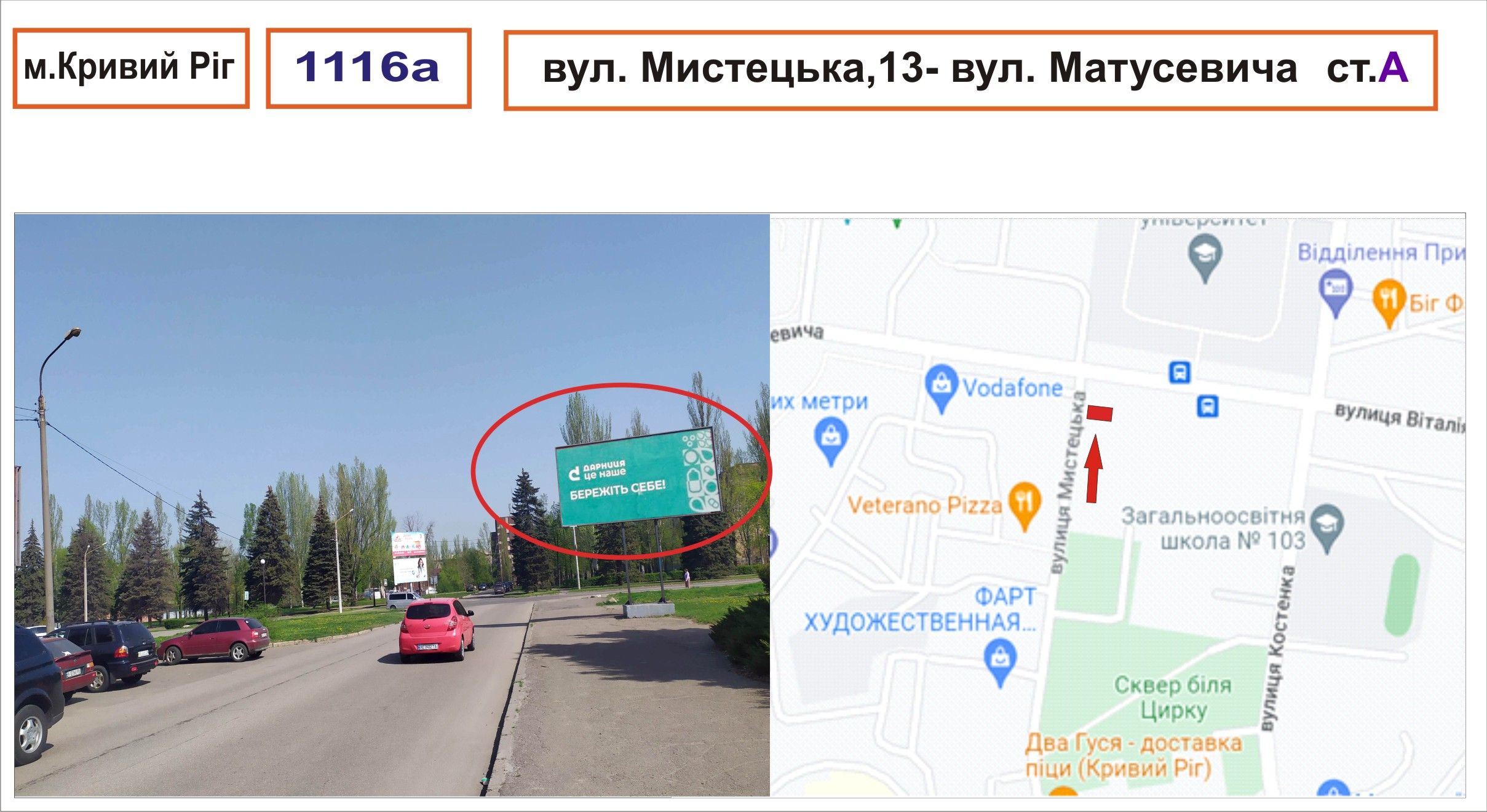 Білборд/Щит вул. Мистецька,13-вул. Матусевича, Кривий Ріг