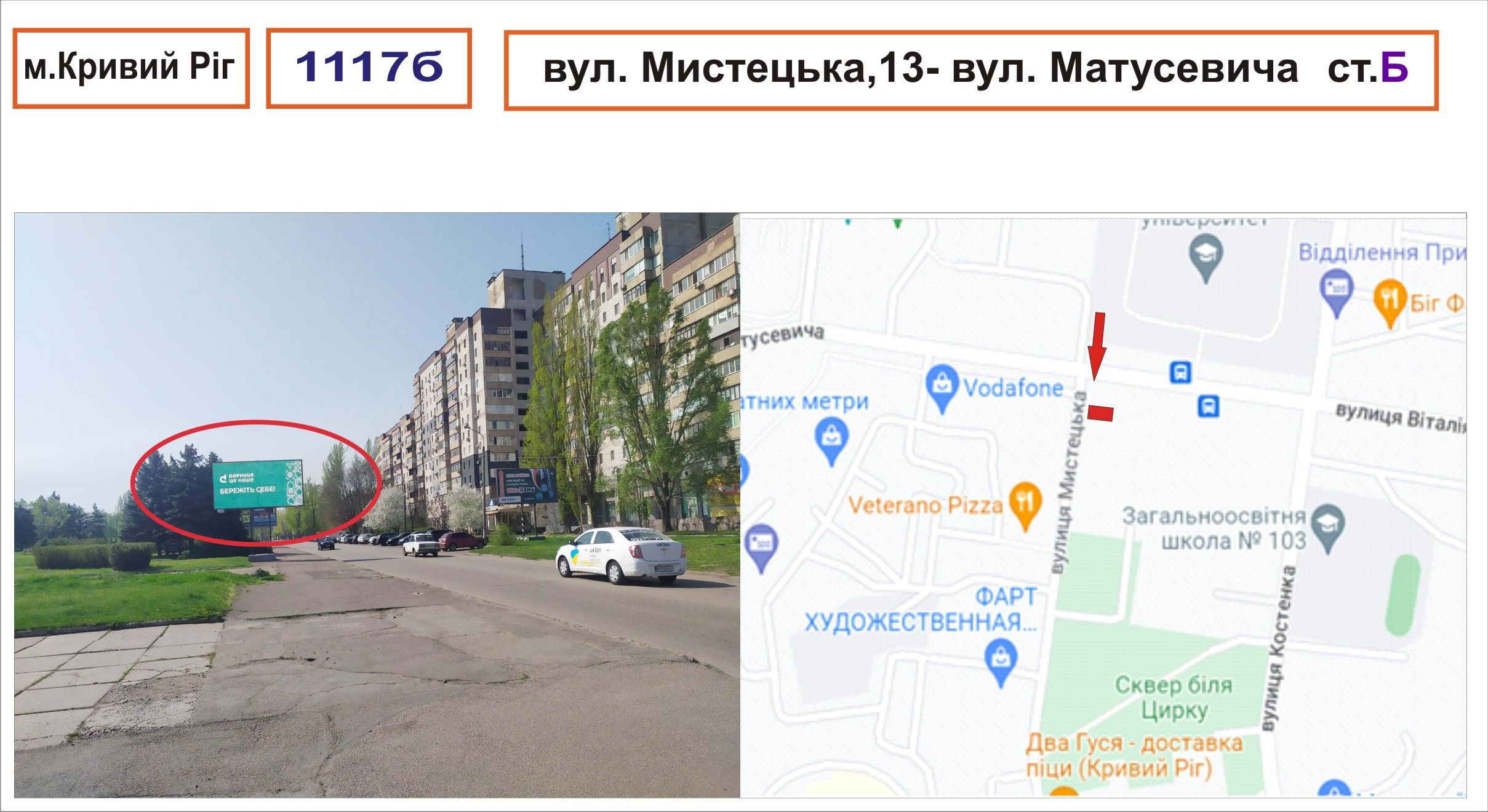 Білборд/Щит вул. Мистецька,13-вул. Матусевича, Кривий Ріг