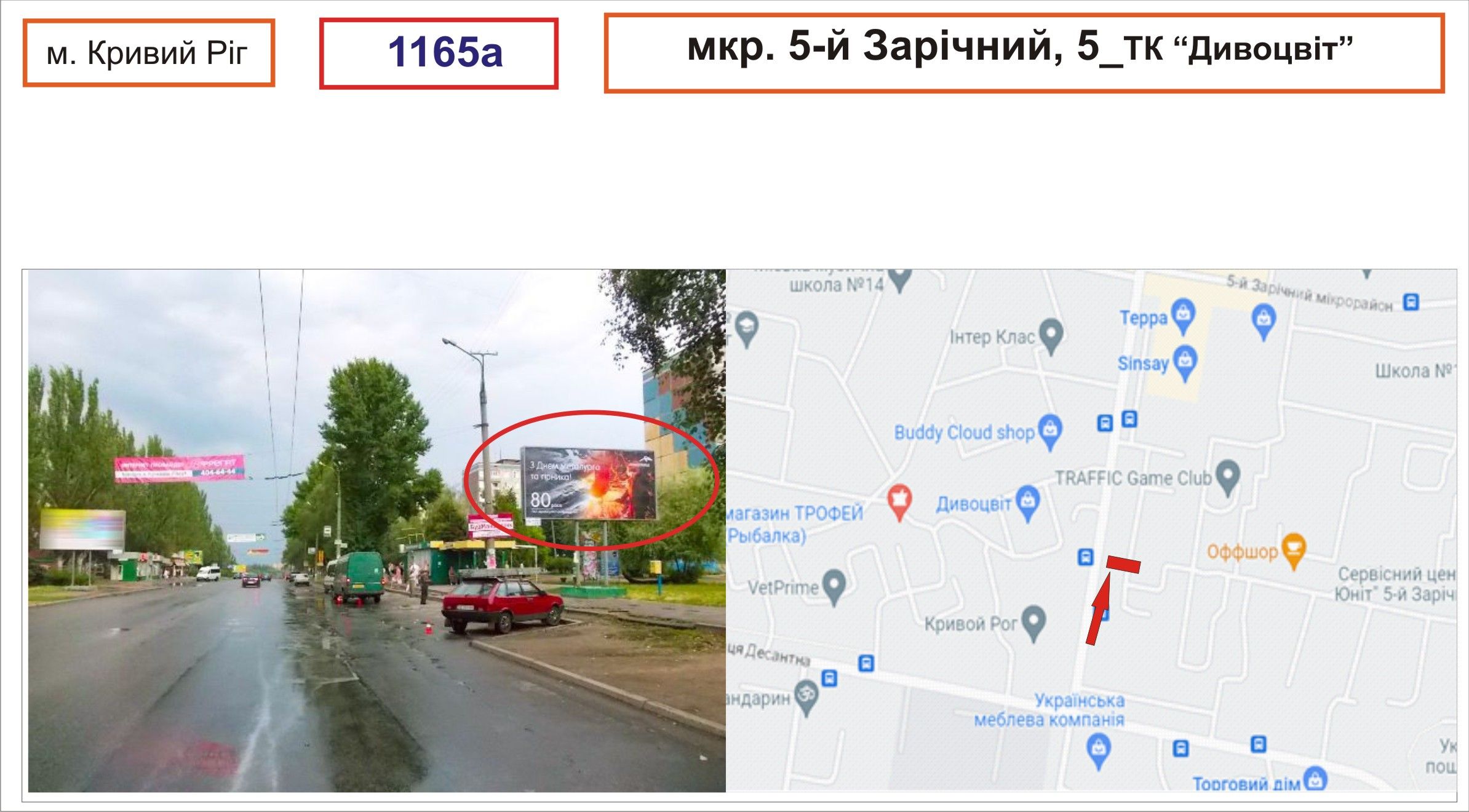 Білборд/Щит мкр.5-й Зарічний_ТЦ Дивоцвіт, Кривий Ріг