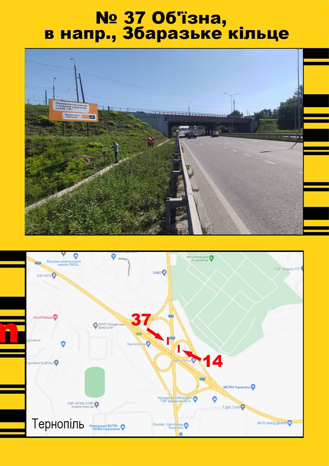 Білборд/Щит Об'їзна ЛІВИЙ, микулинецький клеверний міст в напр. МЕТРО, Збаразьке кільце 12х3, Тернопіль