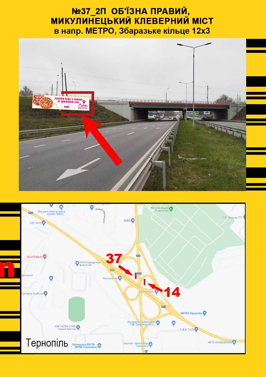 Білборд/Щит Об'їзна ПРАВИЙ, микулинецький клеверний міст в напр. МЕТРО, Збаразьке кільце 12х3, Тернопіль