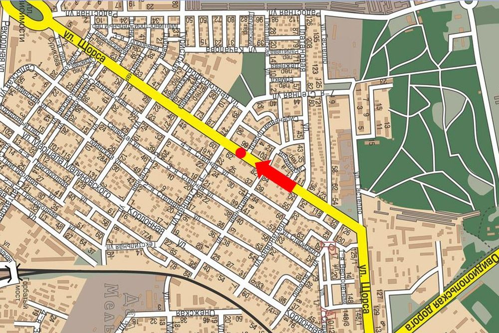 Ріхтера вул. (кол. Щорса вул.), 99, роздільник, в бік Незалежності пл., ліва