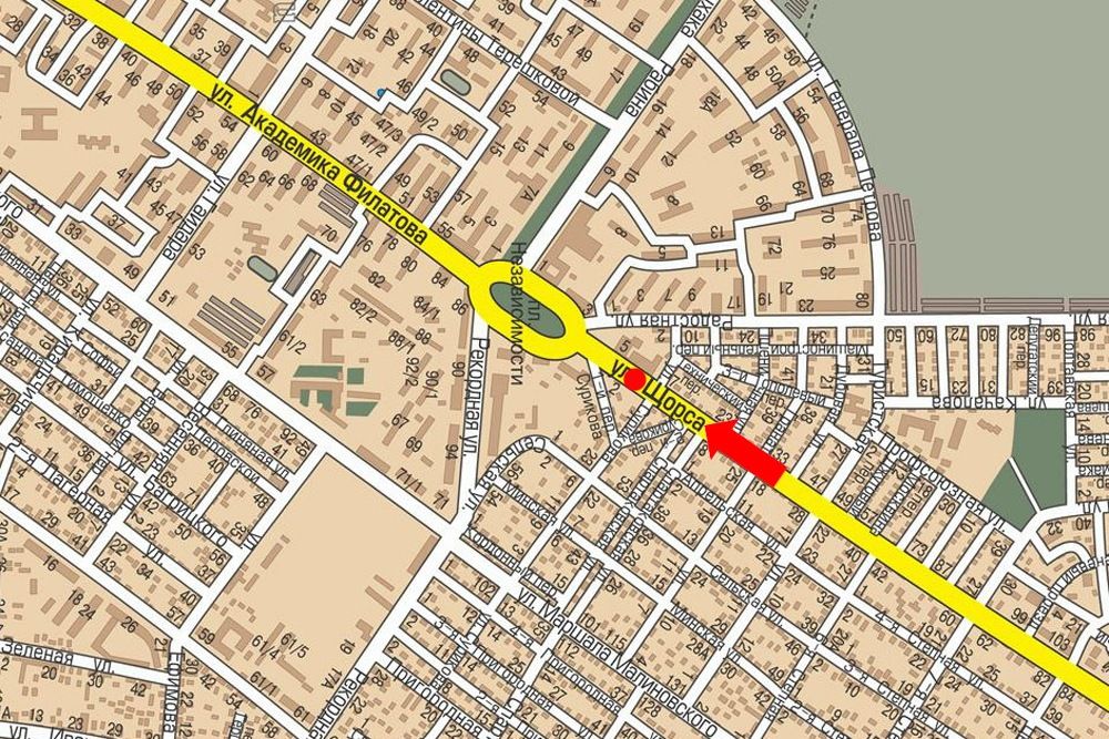Ріхтера вул. (кол. Щорса вул.) / Радісна вул., 2/4, в бік Деревянка пл., роздільник, ліва