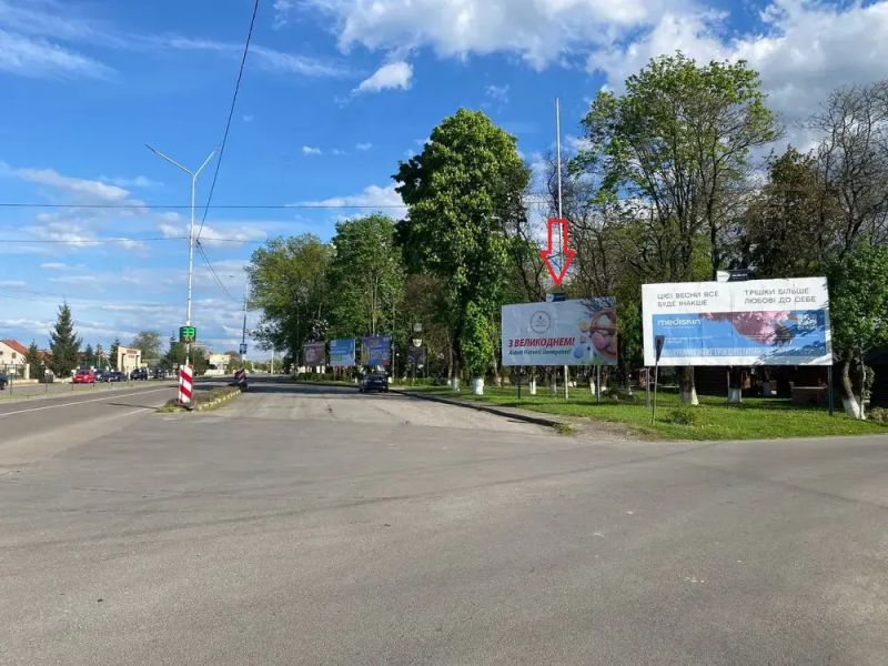 Білборд/Щит м. Тячів вул.Червоноармійська, вїзд 150м.стадіон, ресторани, аква парк, азс в сторону м. Рахів, Тячів