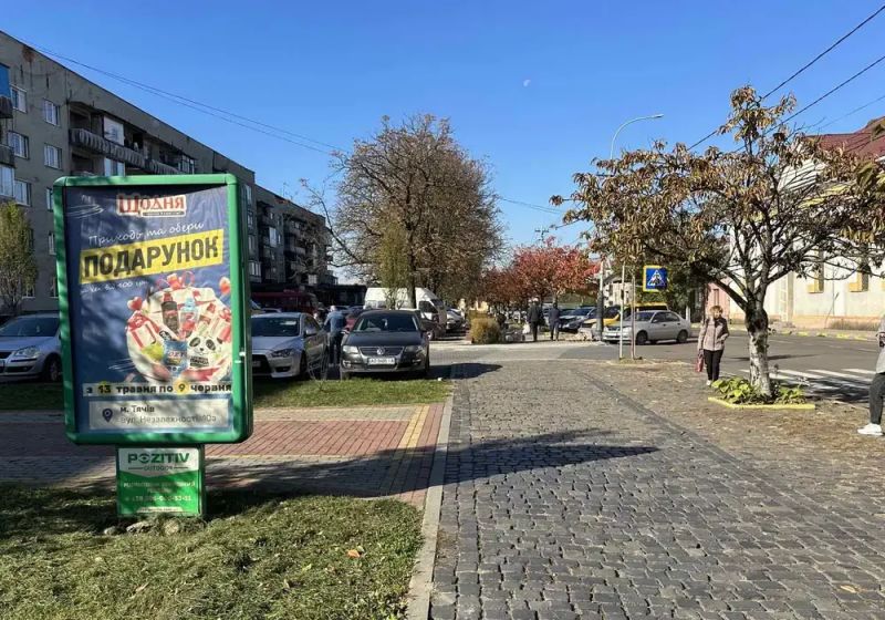 Сітілайт вул. Незалежності, біля Надра, Коопінвест та Індекс банків, Тячів