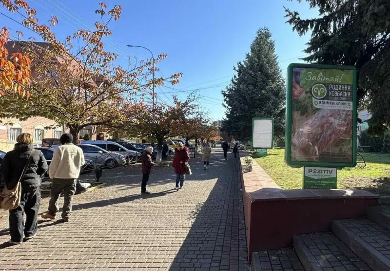 Сітілайт вул. Незалежності, центр міста, вхід біля Універмагу, Ексім банку, напроти продуктового магазину, масове скупчення людей, Тячів