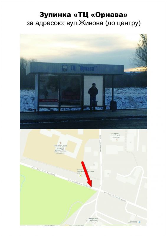 Реклама на зупинках «ТЦ «Орнава» вул.Живова (до центру), 4-та площина, Тернопіль