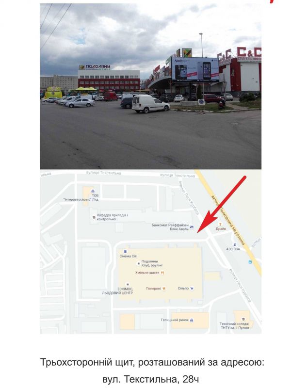 Білборд/Щит вул.Текстильна, 28Ч, "Подоляни", Тернопіль