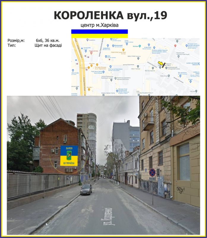Реклама на фасадах/Брандмауер Короленка вулиця, 19, Харків